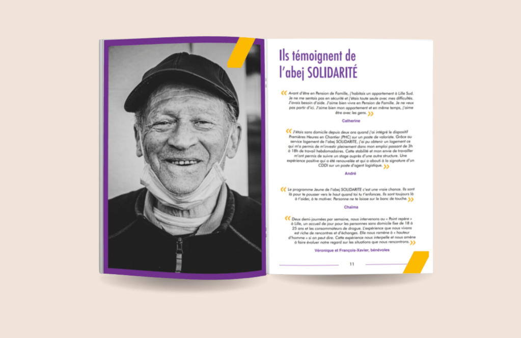 L’abej SOLIDARITE est une association qui lutte chaque jour pour que les personnes à la rue dans la métropole lilloise sortent de l’exclusion. La mission de l’abej SOLIDARITE est de proposer un accompagnement global, de prendre soin de l’intégralité de la personne. L’abej SOLIDARITE c’est : allers vers, accueillir, loger, soigner, insérer par l’activité économique. En savoir plus